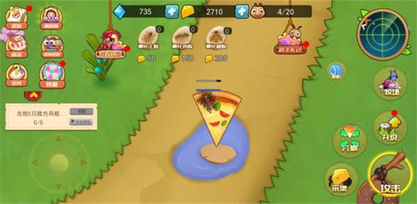 3、首先我们可以看看周围有什么食物,然后进行采集,在采集的过程中还要注意敌方的进攻;