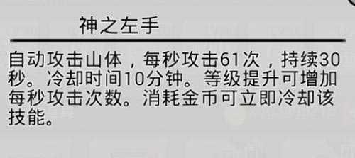 在愚公移山2中玩家除了需要用手不断的点击进行伤害触发以外,还可以使用技能进行自动攻击,那么这些技能又该是怎么样的呢?下面就让小编来为大家简单的介绍一下!