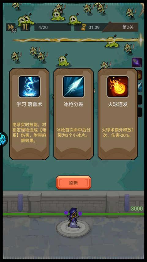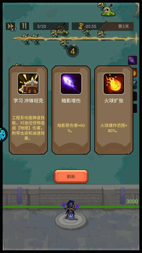 2、进入关卡后,角色会自动释放技能进行攻击,将敌人击败可以获得经验值。