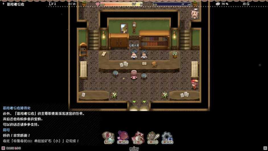 之后莉可来到公会正式开始接受委托,解锁主线事件03。以后不用再进来领取委托了,在外面那块板子上就可以提交和领取委托,这个委托似乎是根据人物等级开启的,而不是迷宫进度,很蠢。