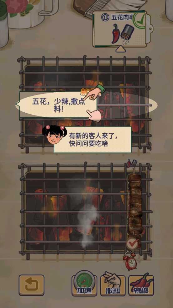 6、遇到新的顾客会提出新的烤串需求,玩家需要仔细观察;
