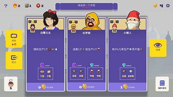 4、每次完成金币目标的时候,都可以在随机的新市民当中选择一个,不同的市民有不同的属性,