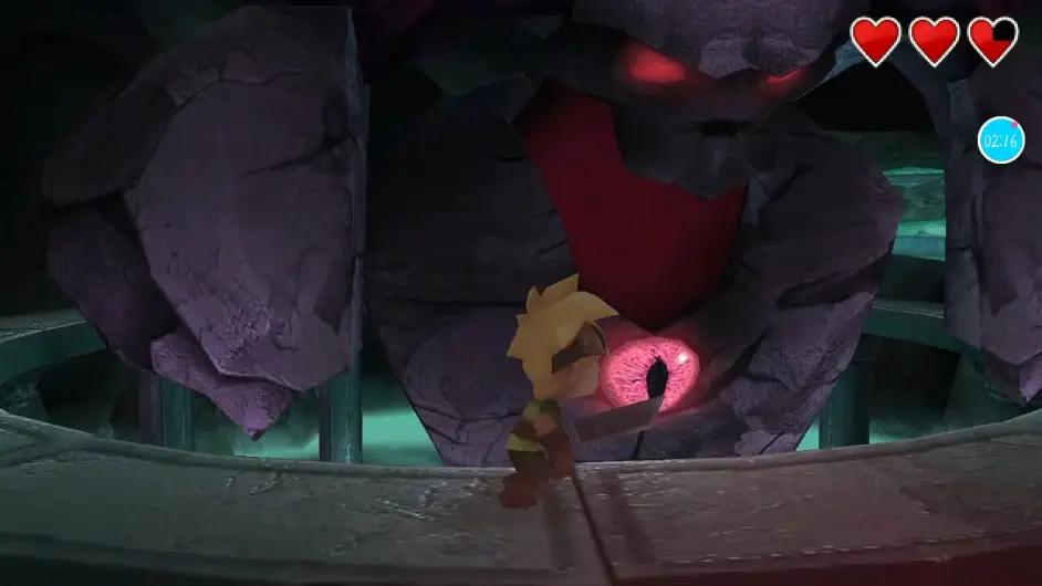 当泽菲罗斯喷火后,他会停顿一小段时间。此时,如果攻击他正面的眼睛,他就会停顿更长的时间,同时粉色的核心会弹出(可能会偏离一些)。如果你跑过去攻击核心,它就会闪烁三次,然后回到石甲上。攻击时需要注意方向,无论是攻击正面还是核心,都是需要向前攻击的。