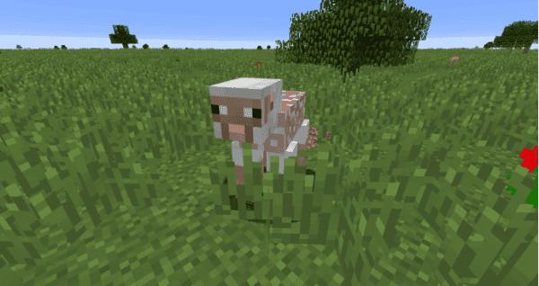 吃掉一块草皮的羊,可以看到其身旁出现了一块泥土