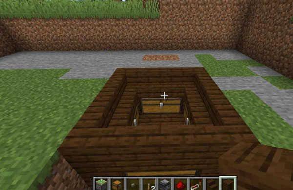 第五步:在刷怪塔底部留一个空间用来攻击怪物同时不被怪物打到,可以在底部用漏斗和箱子做一个收集装置,用来收集怪物的掉落物品