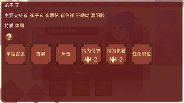 让二代受苦的根源,基本是权臣的影响力及声望,这两个数值是息息相关且相互加成的,如果权臣的二类数值高过女帝,就会导致女帝指令无人执行。