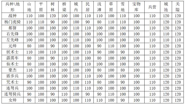 地形适应力为各个兵种在对应地形上能够发挥的属性值。
