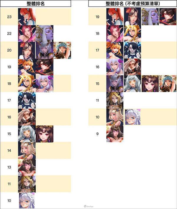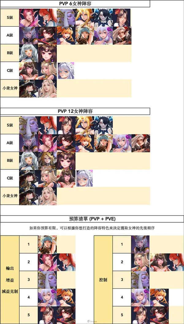 如何用有限的预算打造出性价比最高的阵容是一门学问,以下是给大家带来的女神整体的强度排名,排名靠前的女神无论是PVE还是PVP都能有一定的强度,希望可以给大家带来帮助!