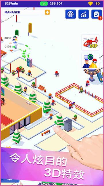 2、滑雪厂大亨游戏的获得更多金币,获得更多奖励,等待丰富的滑雪挑战。