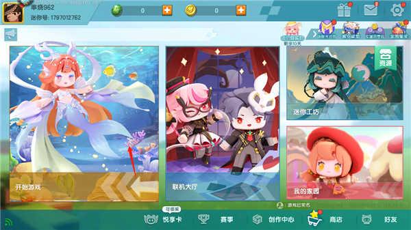 3、正式进入游戏后,里面为用户提供了开始游戏、联机大厅、迷你工坊、我的家园等等玩法,我们根据指引,进入联机大厅;