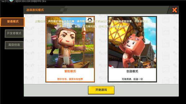 8、里面提供冒险模式和创作模式,选择你想要的游戏模式,点击开始游戏;