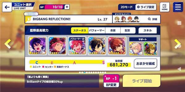 这个是与歌曲不同色的队伍配法,总战力为:681270