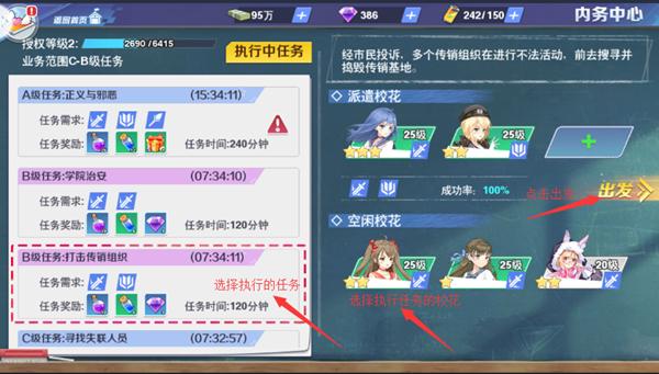 “内务中心”是给校花次元使发布任务的地方,这里有源源不断的任务和奖励送给大家。当你拥有足够多的校花,你就可以同时派遣她们出去更多的执行任务。