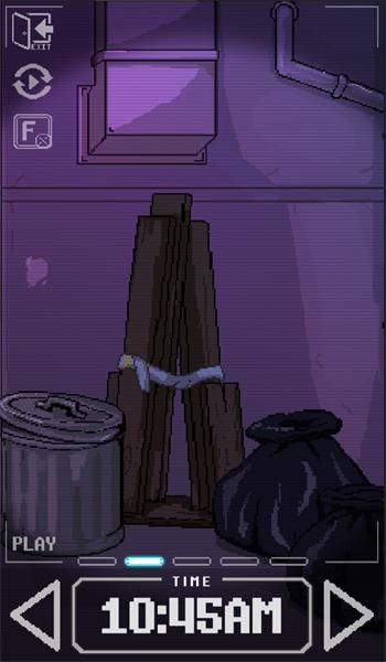 1、首先,视角是一个小巷子里的深处,鼠标左右拖拉镜头,点下面可以跳转时间,标有new的就是有新事件