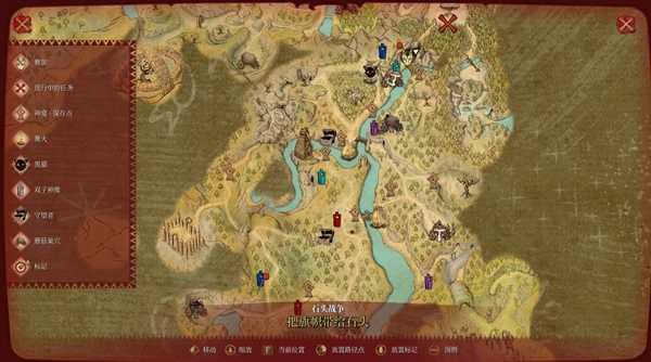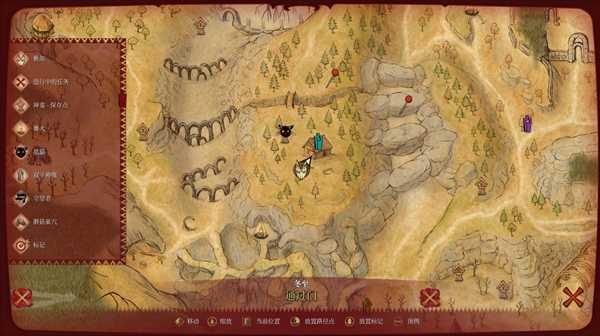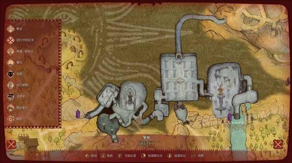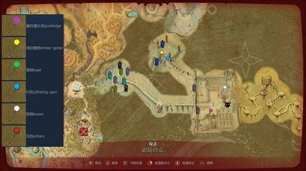 上方那个房子需要从附近地上一个洞进去。下方的房子里大概率有个技能。中间那个是个石头蟾蜍,拿起后会走得很慢,可以喝下红药,就会解除减速状态了。红色闪现雕像旁的红色标记是统一雕像。
