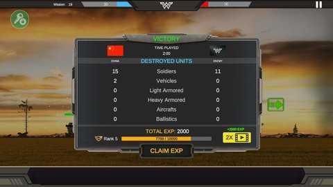 6、赢得战役胜利,多次挑战就可以解锁更多的兵种和军事单位以及场景,胜率越高,升级越快。