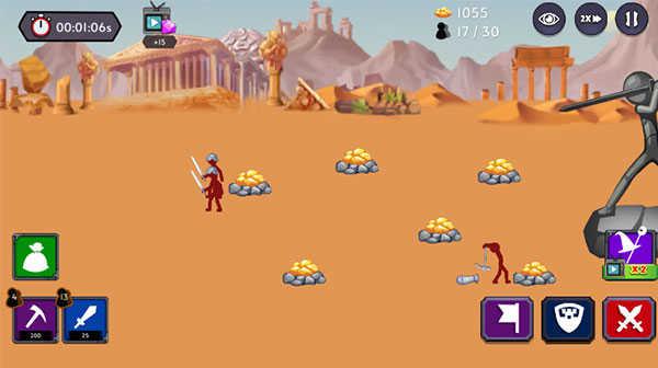 玩家们在前进的时候需要能够很好的找到依稀帮助我们获得高分的方法,因此在游戏开始的时候玩家们首先需要购买一些挖矿的小人来帮助我们制造出更多的金币,这样在后期才有足够的金币去购买战斗的小人。
