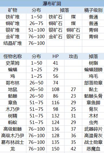 无冬镇物语5.2.4完整版矿洞掉落表