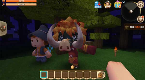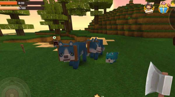 2、其次就是这一类游戏最大的主要内容:生存!在游戏的一开始你需要先收集一些基本的资源,制造一些简单的工具。最首要的就是砍树。方法就是找到一棵树,将屏幕的中心对准树干长按屏幕,然后触碰掉落的木块,就会获得一些木材。再将这些木材制作成基本的工具。比如可以用来防身的木剑、可以加快砍树的木斧、可以加快挖矿的木镐等等,都可以让你在前期的资源收集中提高非常多的效率,领先其他玩家。在收集足够的材料时,你也要记得用木剑猎取一些小动物,可以获得皮毛和肉,前者以后可以做衣服,而生肉则是前期重要的食物来源。也要用多余的木材建造一个工作台,可以制作更复杂的一些道具。
