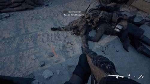 消灭敌人之后,穿过升降杆,会有半履带车持续输出,让队友火力压制之后,向右走。