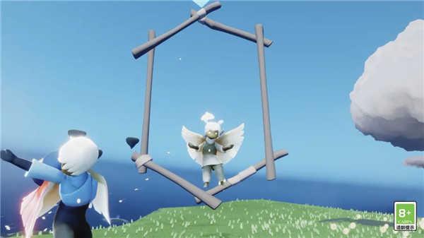 找到黄色人影,与它们互动 收集“光之翼”,我们的 飞行技能就可以得到 升级――斗篷背后 星星的数量就代表我们的飞行级别。