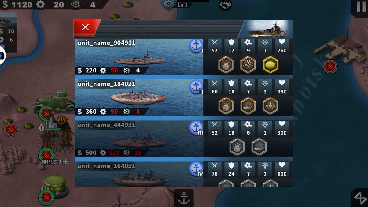 7、海军各有千秋,潜艇巡洋舰和航母都有用,所以在20级时,我们买12个装步,6个潜艇,4个巡洋舰