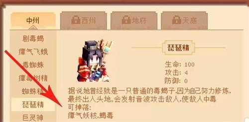 4、最后找到里面的蜘蛛精,即可掉落瘴气妖核,击败琵琶精也会掉落这种材料。