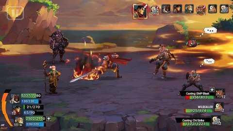 游戏的战斗系统就和看上去一样有趣,玩家要从6名Battle Chasers中选出3名登场战斗,每名角色都有着独有的能力。战斗中每名角色都能从快速攻击,技能和拥有特写演出镜头的爆发攻击(Burst Attack)中选择一种发动,但后两种能力需要玩家进行一回合蓄力才能使用。游戏中的敌人同样可以发动快速攻击与技能,而boss敌人更是有着自己独特的爆发攻击。