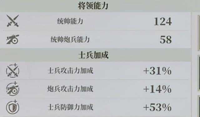 (n为统帅能力)。而士兵攻击力加成是加成所有兵种,例如:炮将上步兵,也会有士兵攻击加成。