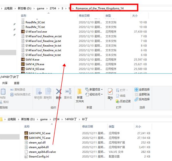2、把全部破解补丁,直接复制到游戏根目录(Romance_of_the_Three_Kingdoms_14)中;