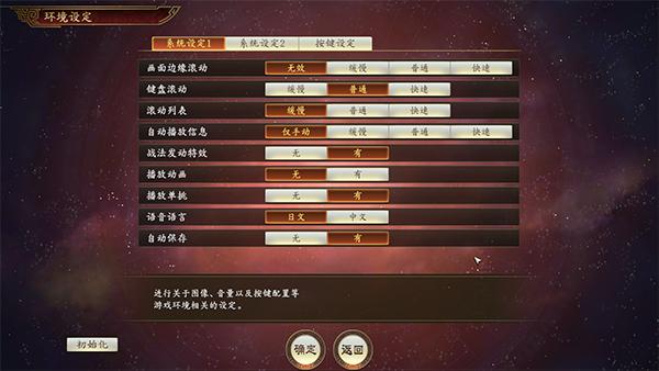 6、好了成功进入游戏,小编建议先设置一下,在系统设定1中建议开启中文语言、开启自动保存,其他自行设定即可;