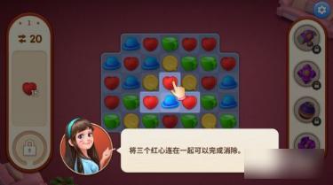 2、先消除上方红的爱心,让他们合成特殊的道具,在利用这个道具消除一个木板,以及上方会重新排列顺序。