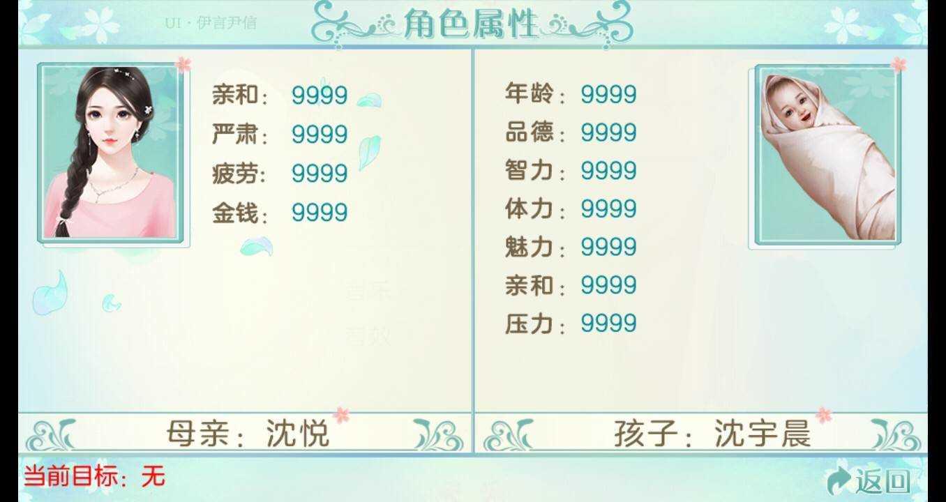 攻略26:6岁的孩子立绘,一共三个形态。属性220以下的,获得普通宝宝一枚,属性220以上而且智力大于等于体力,获得文静宝宝一枚,属性220以上而且体力大于智力的,获得活泼宝宝一枚。