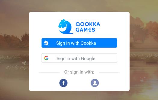 从上往下的顺序依次是Qookka Games账号登录、谷歌账号登录、facebook账号登录,右下角则是游客登录;