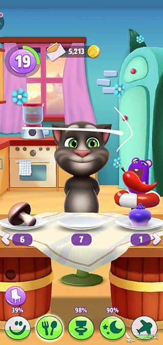 天天开心:玩家可以在汤姆猫饿了时喂他吃的,在他脏了时给他洗澡,在他累了时让他上床睡觉,在他憋不住了时赶快带他上厕所!看着他成长为一只快乐的大猫!