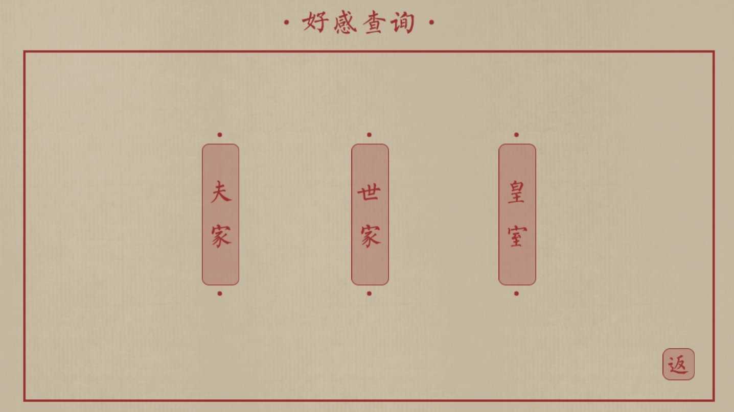 回答:这个其实很多人都说过了,但是有些新入坑的不知道而已,现在没有看好感的地方,夫君高好感的时候在墨竹阁谈一些事,是没有纳妾这个选项的。