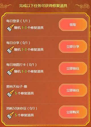3、本次活动需要我们完成右侧的活动任务获得修复道具,之后花费修复道具修复壁画,最后通过修复进度获得奖励。