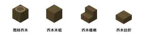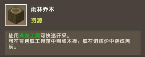 用斧类工具采集后可以制作乔木木板、楼梯、台阶,找到了雨林也就证明你找到了大量的木材!