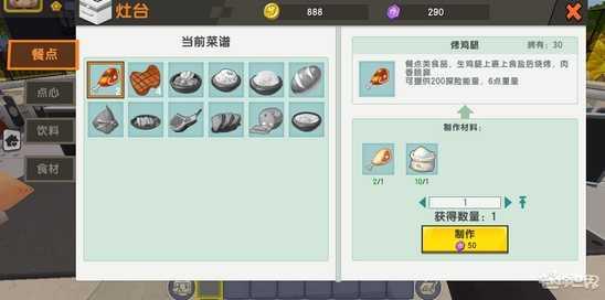 原来生物产出的资源可以用来当做食材加工成食品,我们找到料理台区域: