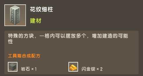 花纹细柱作为装饰方块,与其他方块有着非常大的不同,花纹细柱只会占用四分之一的格子空间。