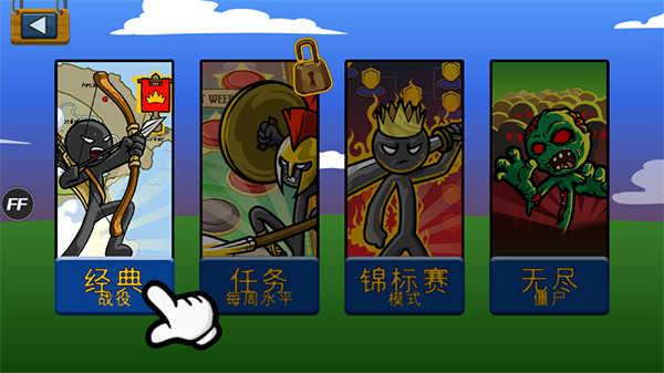 1、打开游戏火柴人战争遗产,进入游戏主页面。