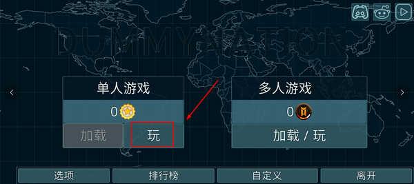 1、打开虚拟国家(Dummynation)手机版,游戏分为单人游戏和多人游戏,这里以单人游戏为例,点击玩;