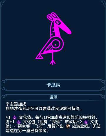 之后就是特殊单位了,秦始皇的特殊单位为虎蹲炮,虎蹲炮属性为移动2、近战攻击力30、远程攻击力50、射程1。这个特色单位是中世纪单位,介绍为:射程为1的高伤害单位。不过不少人对于虎蹲炮是不太感冒的,虽然在历史上这款武器非常给力。但是在文明6里面,同期单位对比的话,性价比不是太高。进攻不足,但是防守的话,还是可堪一用的。