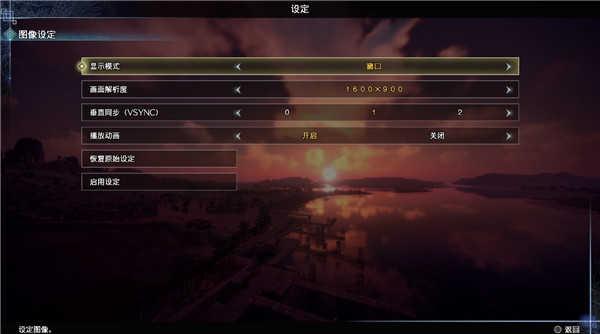 4、点击设定,选图像设定,在这个板块中,玩家可以自定义调节显示模式、垂直同步、播放动画、恢复原始设定等等参数;