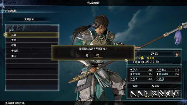 6、新手玩家可以进入作战教学板块熟悉基本的操作和玩法,进入教学后,玩家可以选择自己想要的武将开启游戏;