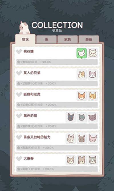 4、在收藏品当中可以看到解锁的猫咪以及各种物品;