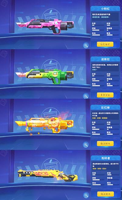 霰弹枪涂也没让人失望。在配色上更为大胆和艳丽,在性能提升上同样做到了针对性提升。特别是气锤这一款,涂改空间非常大。“小粉红”重点提升了的枪械穿透效果和换弹速率;“迷拉斯”在射程上做了双+的提升;“彩虹蜥蜴”重点提升了枪械的伤害射程和载弹量;达到50级的话解锁的“荣耀气锤”和“荣耀S686”则在切枪速率上做了双+的提升,同时提升了换弹速度和精准度。