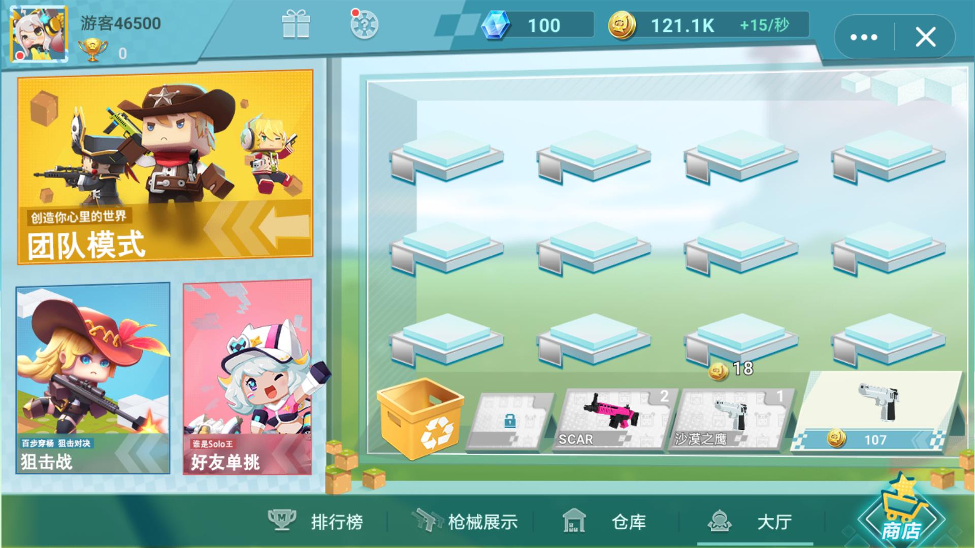 2、然后我们进入主界面可以看到整体的布局还是非常舒服的,各种内容一目了然我们可点击右下角的枪战对决开始比赛,目前只开放两种模式分别是狙击模式和普通团队竞技模式。
