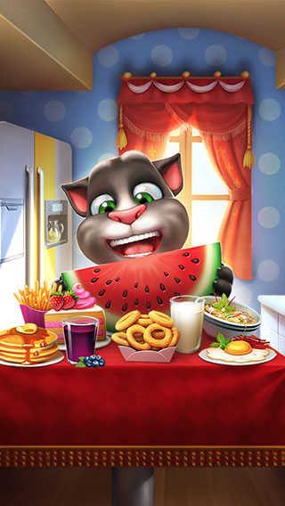点击后带汤姆猫到餐厅,这里的食物可以供玩家喂养汤姆。