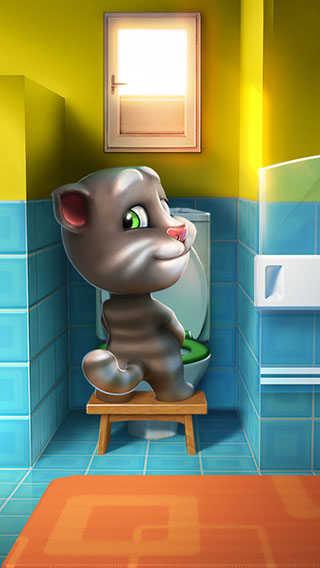 6、如果吃多了,汤姆猫会想上厕所,这时候就需要到浴室点击马桶,汤姆猫就会自己去上厕所了。